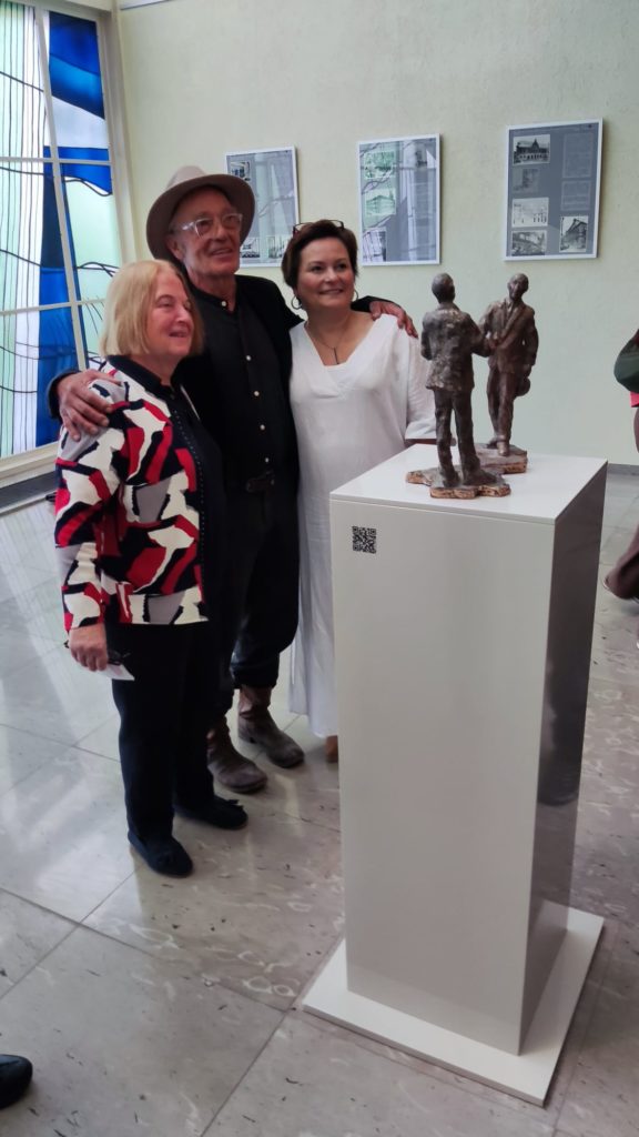 Der Künstler Sebastian Probst mit Veronika Ferger aus Köln und Géraldine Payne aus Lille.
